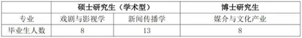 冠军体育下载2022届毕业生来自新闻学、广告学、广播电视学、网络与新媒体专业、播音与主持艺术专业共5个本科专业,戏剧与影视学(硕士)、新闻传播学(硕士)、媒介与文化产业(博士)共3个研究生专业。