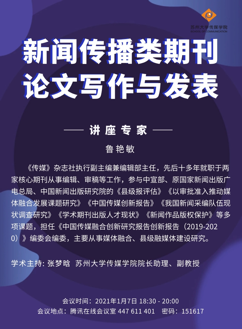 学术讲座(2021年第一期):新闻传播类期刊论文写作与发表