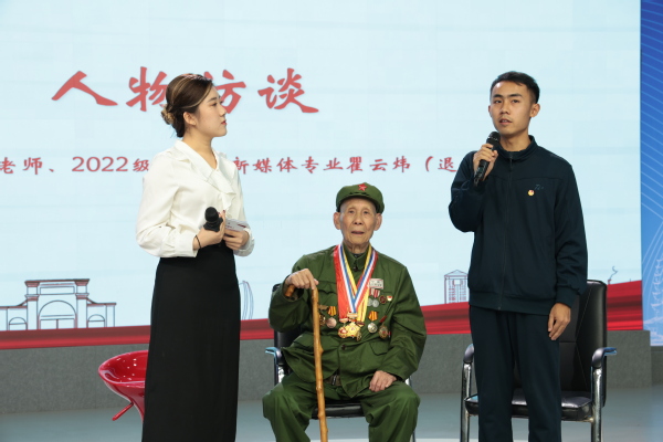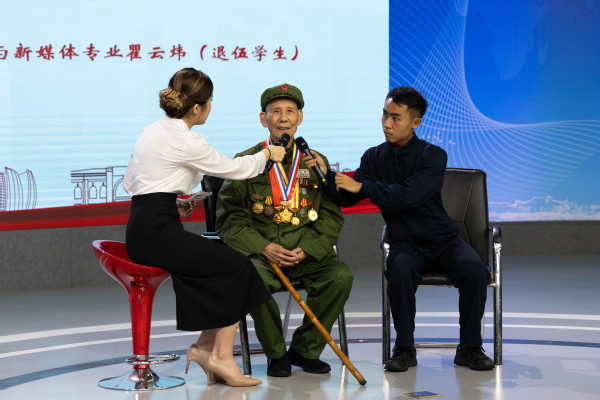 “今天非常荣幸能够见到曹积盛老师,抗美援朝老兵是我们心目中的时代英雄。”传媒学院2022级网络与新媒体专业退伍学生瞿云炜上台分享了自身难忘的军旅生涯与申请入党的初衷。他表示,作为一名大学生要从老一辈革命家的身上更好地传承红色基因,在今后的学习和工作中承担起属于青年一代的责任。