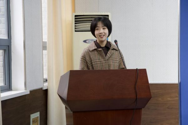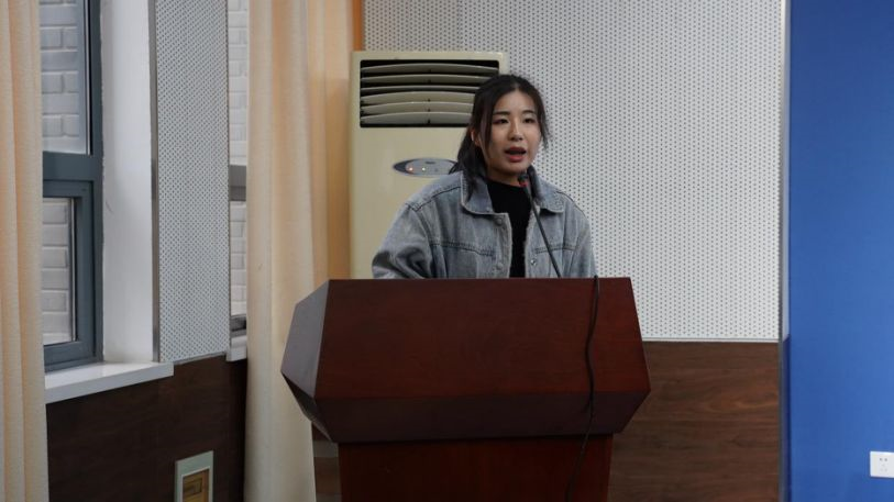 苏州大学校研究生会副主席沈怡佳也上台对去年我院研会工作进行总结,她肯定了传媒学院研会为校研究生会所做的贡献,希望以后能够有更多的交流和合作。