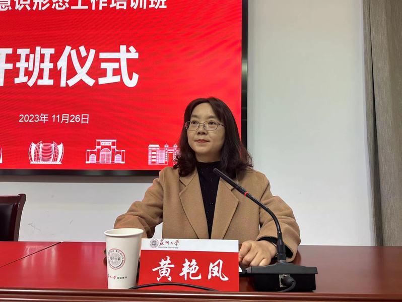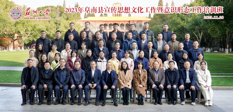 2023年11月26日上午,2023年阜南县宣传思想文化工作暨意识形态工作专题培训班的开班仪式在我校天赐庄校区培训中心105教室举行。安徽省阜阳市阜南县委常委、宣传部部长张雷同志,苏州大学传媒学院副院长、管理培训学院副院长黄艳凤同志,新华社中国经济信息社安徽中心总监张勇同志出席此次开班典礼。来自阜阳市委宣传部的两位领导及阜南县宣传系统领导干部约50余人参加了此次开班。