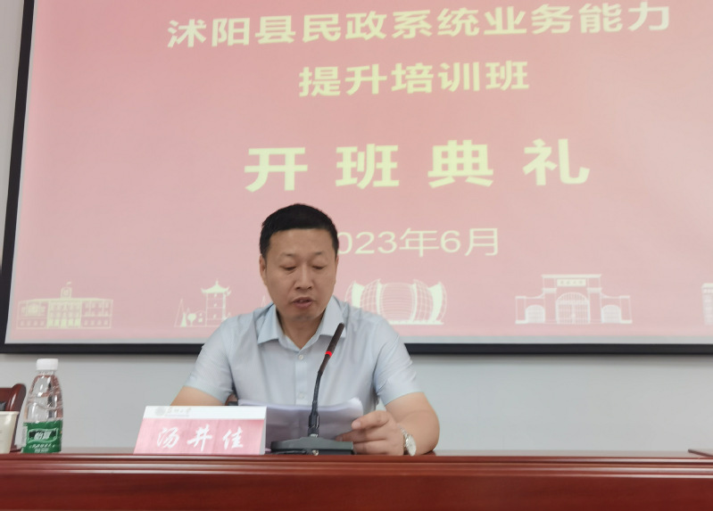2023年6月6日上午,沭阳县民政系统业务能力提升培训班在我校天赐庄校区顺利开班。来自沭阳县民政系统相关的50位领导干部参加了本次培训。沭阳县民政局党组成员、副局长汤井佳,冠军体育下载副院长谷鹏出席了开班式。