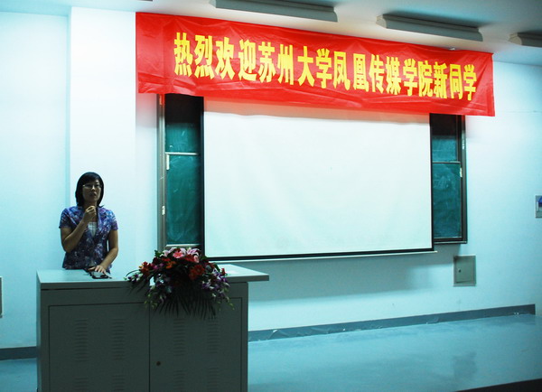 凤凰传媒学院院长王尧教授首先致辞。他简要介绍了苏州大学及本院的发展历程,分析了传媒专业学生所面临的机遇和挑战,并在此基础上强调,凤凰传媒学院在同类学院中排名第18位,希望2009级新生“既来之则安之,不要妄自菲薄”,学会如何做一名具有竞争实力的媒体知识分子。