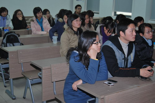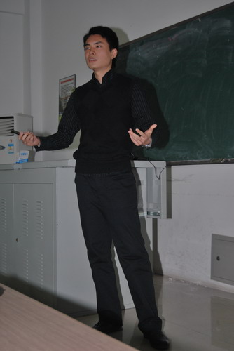 欣赏完短片,黄导开始和大家展开了交流。他用一组照片分享了他《毕业前四年和后四年》的故事。黄凯导演谈吐幽默,娓娓道来,一张照片就是一段故事、一次经历,使同学们受益匪浅。他首先讲述了曾参加过20多次电影节,对自己的电影生涯有重要意义的短片《但我知道》的点滴故事。该片是他大三时视觉造型艺术的期末作业,当时老师要求“非常规”,于是他打破了惯常的题材,将视角转向“与自己年龄有差距”的一种状态,探寻那种“迷失,迷失中又有希望的感觉”。他鼓励大学生们多拍,多做片子,坦言这样会给自己带来一种认可,既使自己被关注了,带来了荣誉,又能让自身感知到人生的意义所在。接着他回忆了自己05年开始的那段“上海公园之旅”,1年多前期的准备,近1年的拍摄,长时间的后期剪辑配音,那一幕幕,他都历历在目。据悉介绍,《上海公园》的拍摄得到了黄导母校——上海大学影视艺术学院的大力支持,校方提供了专门的排练房,相应的设备,同时也解决了资金问题。谈起电影的配音,黄凯导演无不自信地说:“这个电影的配音一定是国产片中最好的。”这源于他对真实的追求,他认为电影要接近生活,要记录瞬间的真实,人说话时喘息呼吸的感觉都要一一还原。所以《上海公园》的后期花费了大量的时间精力来配音,克服了各种困难,以求那种真实的效果。黄导还勉励大家要多去尝试,他以一个跟随汽车拍摄的镜头为例,表示学生时代自己也曾认为这样的镜头很难拍,但当自己真正拍时,发现“其实很简单,租赁一个器材就行。”多拍,多实践才是硬道理。