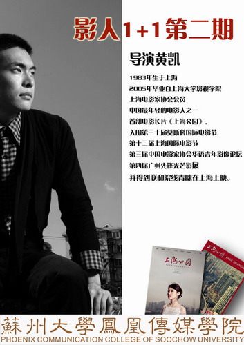 黄凯,是一位年仅25岁的上海新晋电影导演,《上海公园》是他的首部电影长片。该片最终于2008年完成,入围08年第30届莫斯科国际电影节竞赛单元。作为一名80后,黄导和在场同为80后的大学生朋友们讲述了一段80后自己的故事。