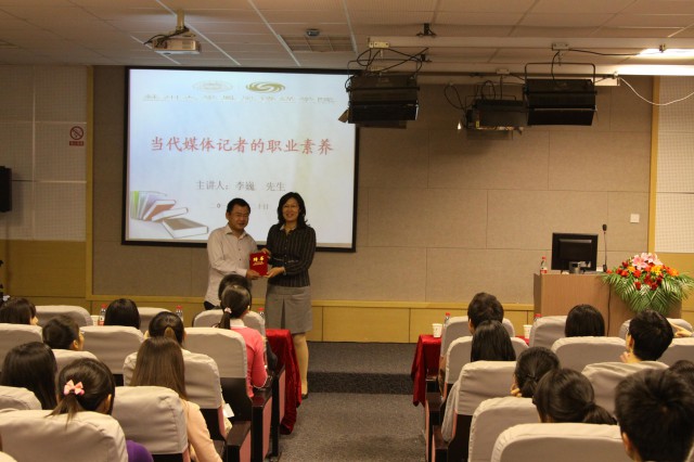 2010年10月20日下午2:00,资深财经媒体人,历任新华社记者、主任记者,中国证券报江苏记者站站长、苏皖总部主任的李巍先生做客凤凰传媒学院凤凰讲坛,为同学们带来了一场关于“当代记者的职业素养”的互动式讲座。学院党委书记赵阳老师,党委副书记、副院长常青伟老师出席讲座。讲座由学院副院长徐国源老师主持。