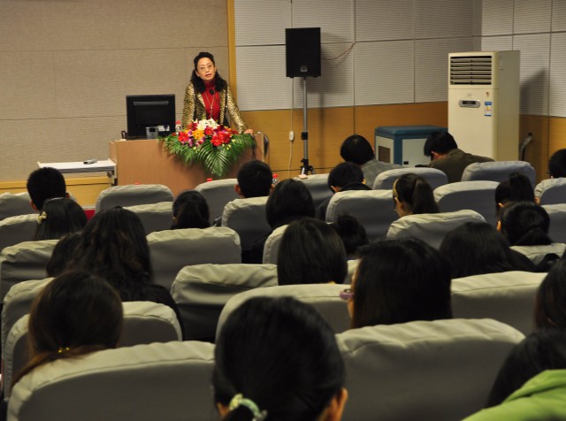 最后陈芳女士就“军事题材电视剧”的本质特征发表了自己的观点,赢得台下掌声连连。同学们热情高涨,认真做着笔记,并在互动的环节中积极提问。对于同学的提问,陈芳女士也都一一作了详细的解释。