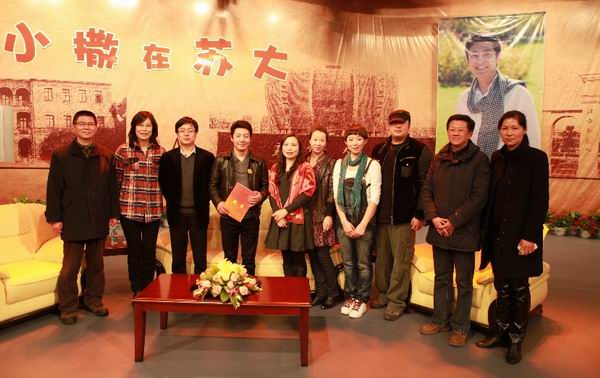 下午4点,在长达10秒钟的掌声中,撒贝宁走进演播厅,以一身休闲装扮出现在广大撒粉面前。访谈由凤凰传媒学院2007级学生富裕主持,并邀请了马忠红教授共同参与此次活动。校党委宣传部部长陈进华,凤凰传媒学院党委书记赵阳,副院长陈龙、徐国源,副书记、副院长常青伟以及《今日说法》摄制组莅临现场观看了访谈活动。
