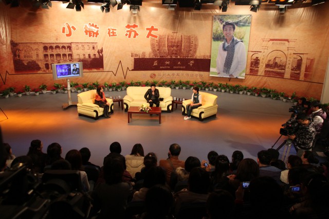 在观众提问环节,撒贝宁依然不失风趣幽默的风格,他以“平缓、淡定、开朗”来形容苏州的城市风格,并诚挚祝福苏州及苏大的未来发展。应观众之邀,撒贝宁还详细解释了如何处理个人微博与《今日说法》微博的关系,并用幽默严谨的语言回答了女大学生就业难的问题。