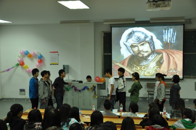 主持人首先上台欢迎嘉宾和同学们的到来,简要的开场白后比赛正式拉开帷幕。11级新闻2班的演员们在掌声中率先走上舞台。他们短剧的题目是《The big words of the western tour》,短剧由西游记改编而成。在表演过程中,演员们始终十分投入,他们生动的表演、专注的神态不时博得观众的掌声。