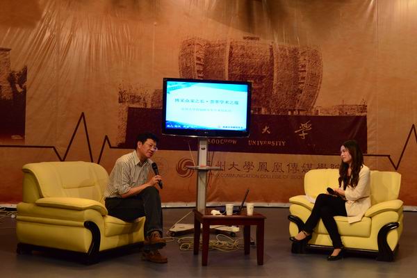 2012年5月9日晚,凤凰传媒学院研究生分会在学院演播厅举办了主题为“视觉传播:当代大众文化特性”的学术沙龙活动。本次沙龙邀请凤凰传媒学院副院长、博士生导师陈龙教授来为研究生们讲解有关视觉传播的话题。本次沙龙也是“苏州大学首届研究生学术巡礼月”系列活动的一部分。