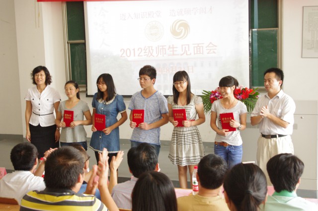 最后,芮院长与赵书记共同为12级新生班主任助理颁发了聘书,希望他们尽职尽责,更好地为新生提供引导和帮助。见面会结束后,2012级研究生们与导师进行了交流,本科生四个班级分别在各班班主任的带领下召开了第一次班会,班主任和同学们进行了进一步面对面的接触与深入的交流。