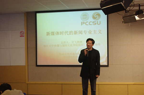 吴飞教授一上台便将这些问题抛出,在同学们的思考中,“新媒体时代的新闻专业主义”讲座正式开始。