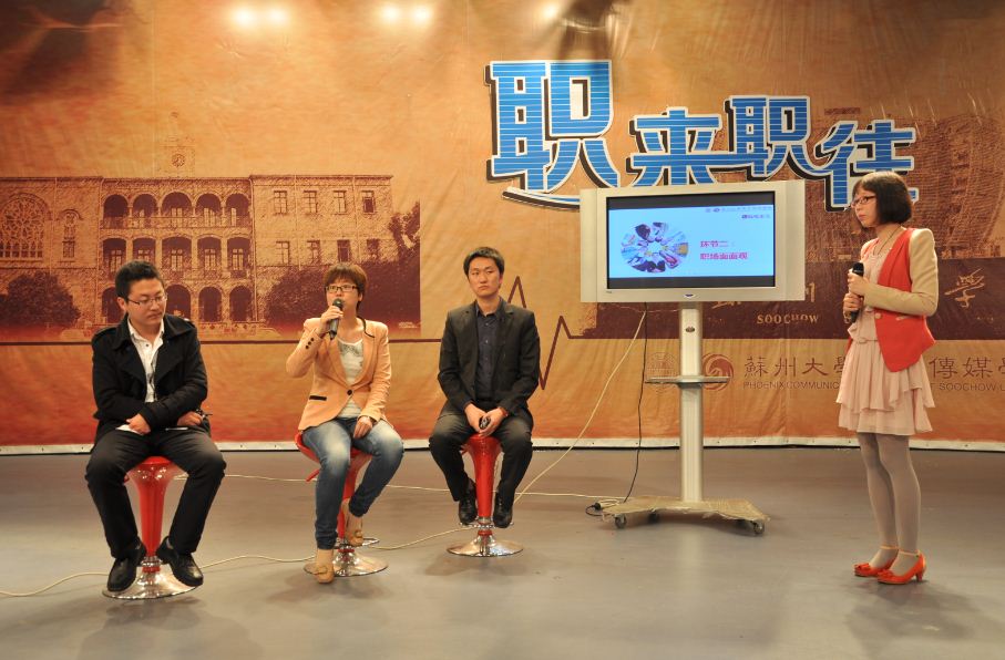 此次活动邀请了苏州大学职业生涯规划中心主任黄文军、凤凰传媒学院党委书记赵阳、研究生秘书唐庆华,应邀出席本次活动的嘉宾还有三位已经顺利找到工作的师哥师姐:教育学院徐树鹏、凤凰传媒学院征鹏、凤凰传媒学院高莺。