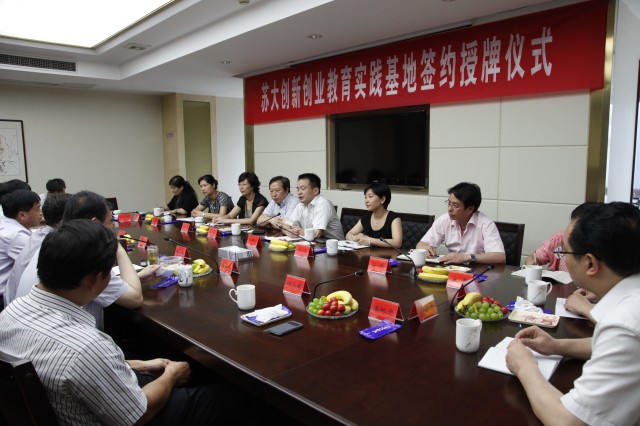 7月4日上午10点,凤凰传媒学院与泰州广播电视传媒集团(台)签定了苏大创新创业教育实践基地共建协议。泰州市委宣传部副部长、泰州广播电视台台长田宏胜,泰州广播电视台总编辑杨富年,苏州大学发展委员会主任薛辉,凤凰传媒学院院长芮国强,院党委书记赵阳以及来自泰州广播电视台、苏州大学发展委员会、凤凰传媒学院的相关领导、老师和部分泰州籍校友出席了创新创业教育实践基地签约授牌仪式,并共同参与了校友联谊活动。泰州广播电视台副总编辑丁新吾主持了本次签约授牌仪式。