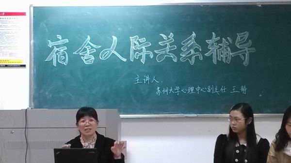 11月12日晚六点,在文科综合楼1002幢2104教室,苏州大学大学生心理健康教育研究中心副主任王静老师与凤凰传媒学院各年级的心理委员、班长、团支书及学生代表以宿舍人际关系进行了辅导座谈