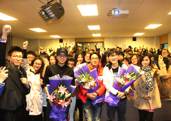 合影之余,《怒放2013》主创们鼓励在座的大学生们珍惜现有的时光,“年轻一次不容易,别浪费美好的大学时光,努力让青春怒放!”