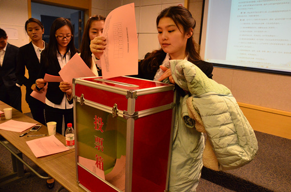 审议工作结束后,民主投票选举工作正式开始。与会代表在经过慎重考虑后有序地投下了自己神圣的一票。在计票工作进行的同时,大会审议并通过了《苏州大学凤凰传媒学院贫困生认定考核方案》、《苏州大学凤凰传媒学院优良学风班评建办法》、《苏州大学凤凰传媒学院学生网络信息安全管理规定》和《苏州大学凤凰传媒学院学生校园文化活动立项办法》。最后,总监票员王雁冰老师宣读了选举结果,第三届凤凰传媒学院团委、学生会、科协、社联38位委员产生。