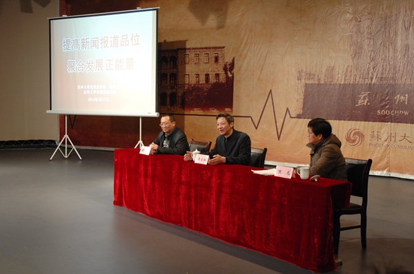 为了进一步传递新闻报道的正能量,营造与我校发展形势相匹配的新闻舆论环境,扩大学校社会影响,2月27日下午,由校党委宣传部、新闻中心、我院联合举办的“提高新闻报道品味聚合发展正能量”新闻报道理论和业务培训讲座在学院演播大厅如期举行。苏州日报副总编王文标应邀为我校师生做讲座,各学院(部)、部门、直属单位从事新闻采写和报送的有关工作人员,学校校内媒体负责人和采编人员,以及我院部分师生参加了本次培训讲座。