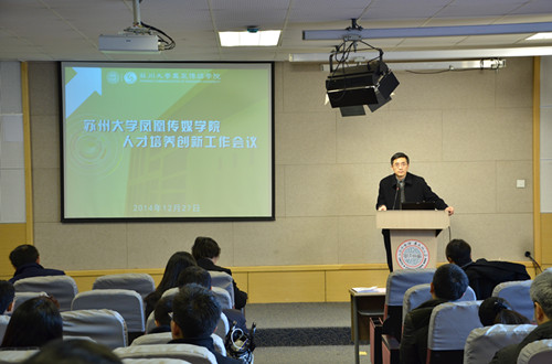 2014年12月27日,学院人才培养创新会议在独墅湖校区文科综合楼5339报告厅召开,苏州大学副校长蒋星红,教务部部长周毅、处长王剑敏,学院党委书记于毓蓝,院长陈龙,副书记、副院长常青伟等领导出席此次会议,学院全体教师及各年级的学生代表参加了会议。会议由学院党委书记于毓蓝主持。