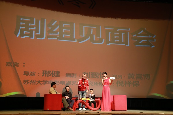 4月15日晚,苏州大学第五届大学生电影节开幕式暨第二十二届北京大学生电影节苏州大学分会场开幕式在独墅湖影剧院一号放映厅举行。开幕式电影《冬》导演邢健、编剧刘觐恺、演员黄嵩博,苏州独墅湖科教发展有限公司总经理助理戚瑶亮、苏州独墅湖科教发展有限公司影剧院分公司总经理袁晓东,我校党委副书记、副校长江作军、校团委书记肖甫青、凤凰传媒学院党委书记于毓蓝、校党委宣传部副部长吴江,凤凰传媒学院党委副书记、副院长常青伟,苏州大学电影电视艺术研究所所长倪祥保等领导嘉宾,以及在苏高校的电影爱好者一同参加了开幕式。