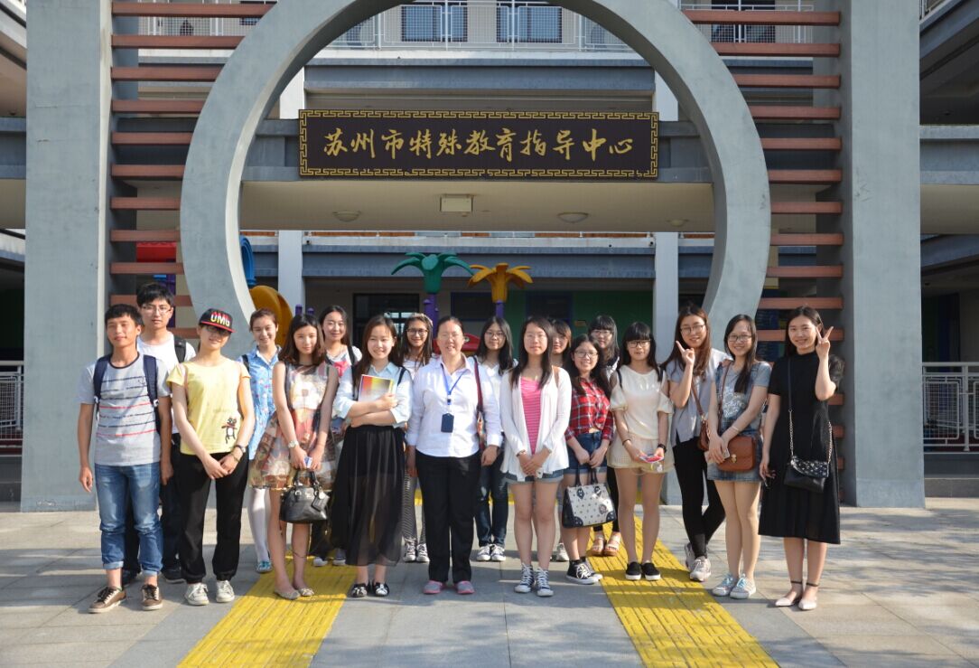 在苏州市川润海社区服务中心社工贾智老师的陪同下,同学们跟随黄小辉副校长参观了这所学校。始建于1931年,2010年迁址木渎,苏州市盲聋学校接收幼儿园到高中年龄段的学生,学校配有游戏治疗室、语言训练室、盲文阅读室等专业教室。盲童教室区域设置盲道、扶手等无障碍设施,特制的书桌、加大了桌洞、增加了边角的桌沿、更好的服务孩子们的生活。