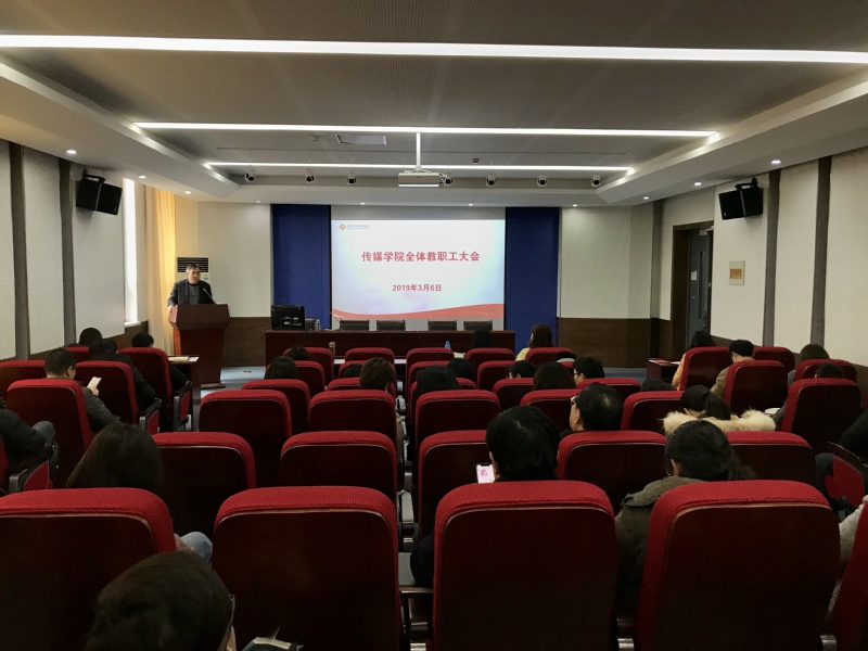 2019年3月6日下午,传媒学院在5148报告厅召开全院教师大会。会议由学院党委书记宁正法主持,学院全体教职工参加了会议。
