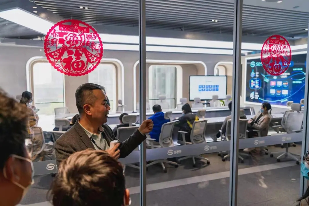 在活动的最后,张俊老师带我们去到了全媒体指挥中心(苏州广播电视总台节目内容的生产,报批,调度的指挥室)指挥中心大屏,作为总台媒体融合的重要平台,集成微博、微信、网站的热点消息,不间断地更新并实时抓取,调集人员前往新闻现场与新闻演播室进行直播互动。张俊老师希望传媒专业地同学们要增加新闻敏感度,提高新闻理解能力。