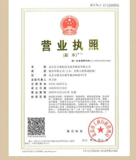 北京东方雨虹防水技术股份有限公司成立于1998年3月,现已发展成为一家集防水材料研发、制造、销售及施工服务于一体的中国防水行业龙头企业,是国家高新技术企业、中国防水行业唯一一家主板上市公司(SZ002271),拥有业内首家国家级企业技术中心和博士后科研工作站。