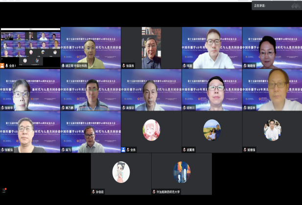 面向未来,中国传播学该往何处去?如何聚焦中国传播学现状,推进传播学发展创新是大会主题发言环节的关注焦点,尹韵公、陈力丹、陈刚、陈昌凤、杨国斌、张涛甫、明安香、唐润华、隋岩、董天策、喻国明、陈龙等专家依次作了主题演讲。下午,八个教师分论坛和四个研究生论坛在线上、线下会场同步进行。晚上,国际学者论坛在云端展开。