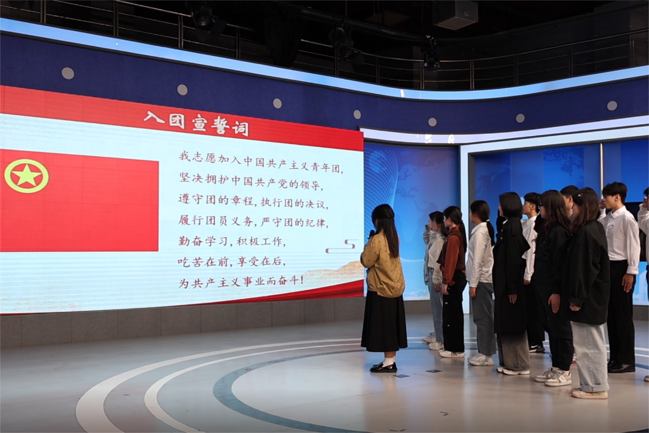 表彰环节后,2021级新闻学专业本科生李雅琼同学带领团员代表重温入团誓词,回忆入团初心。