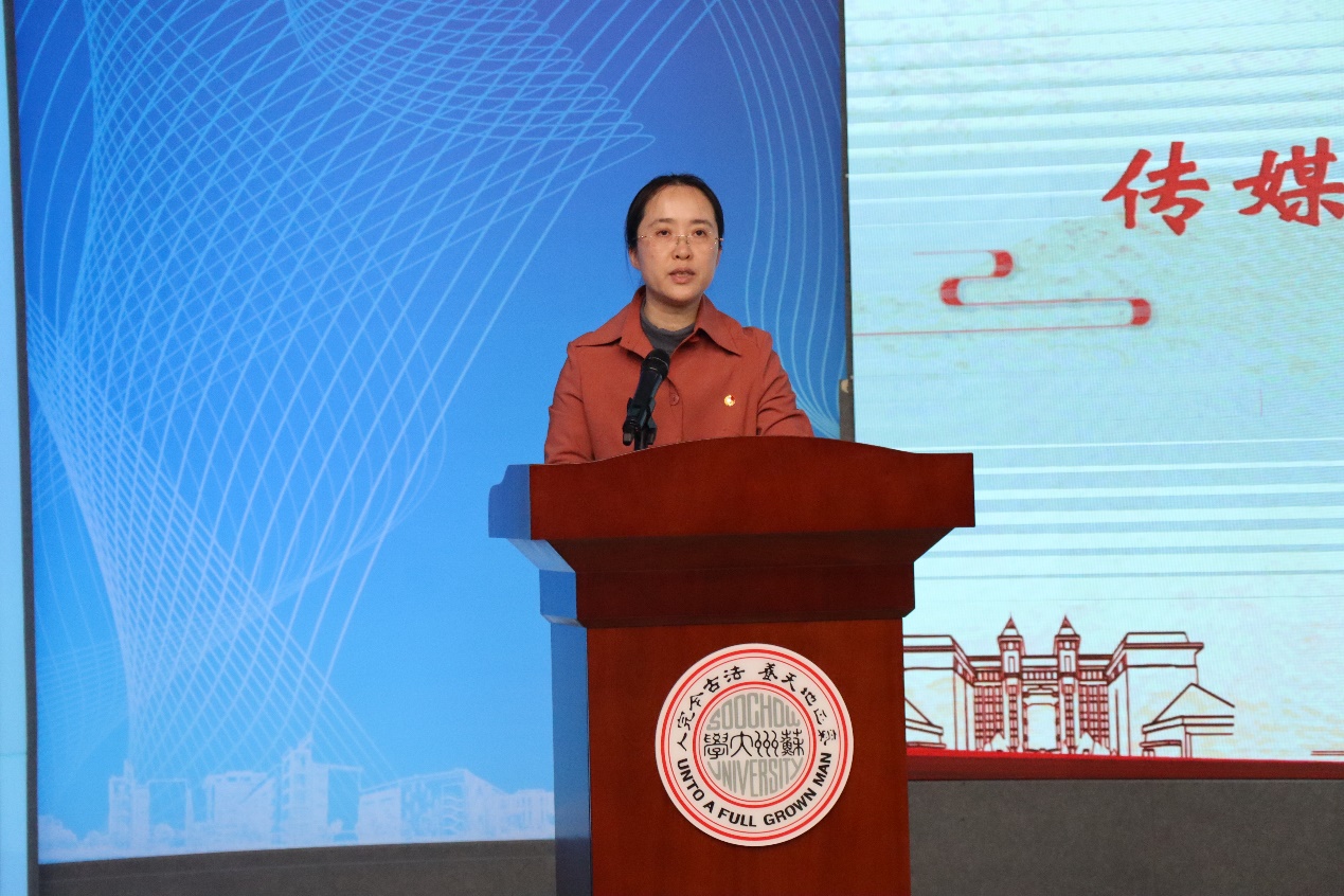 为深入学习贯彻习近平新时代中国特色社会主义思想和党的二十大精神,巩固深化团员和青年主题教育成果,充分发挥先进典型示范引领作用,激励全院团员、团干部和团支部奋发有为,引导全院青年学生担当作为,4月24日下午,传媒学院“永远跟党走 奋进新时代”五四表彰大会暨信仰公开课在独墅湖校区1005幢大演播厅顺利举行。苏州大学马克思主义学院副教授、苏州大学党史学习教育宣讲团成员、关工委“五老”讲师团成员范敏华,传媒学院党委副书记、副院长丁姗,学工办主任宋智,团委书记王雁冰,学工办副主任朱飞,以及学院青马工程学员、本科生和研究生代表出席本次大会。