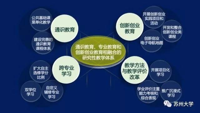 通识教育、专业教育与创新创业教育相融合是苏州大学实现本科人才培养目标的重要途径。创新创业教育作为我校深化教育教学改革的新任务,其主要目标是通过构建创新创业教育生态系统,培养学生的创新理念、创新意识和创新创业能力。