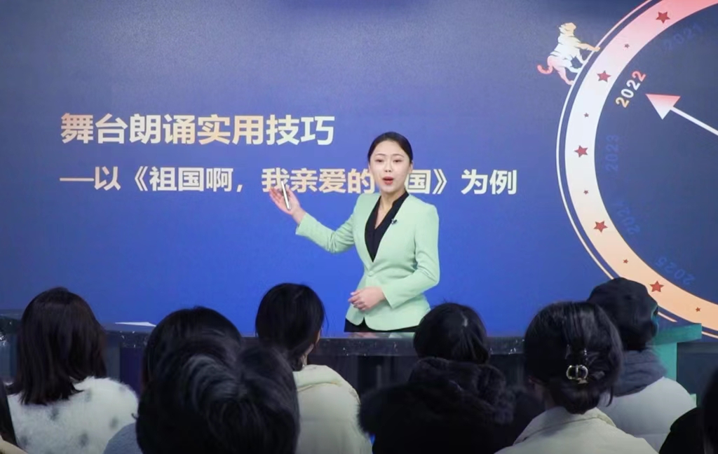 冯洋老师现任传媒学院播音主持艺术教研室主任,工作十年来,她始终秉持赤诚之心,潜心于播音主持与诵读教学改革研究。从诵读翻转课堂激发学生主动学习兴趣,到研学融合的深度学习模式,再到校台全面合作、制作符合播出标准的高质量专题节目,让播音专业教学实现了以学生为主体和因材施教的个性化培养。
