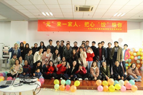 2017年12月27日下午,传媒学院学生会“‘元’来一家人,把心‘饺’给你”元旦活动在苏州大学独墅湖校区二期学生第六食堂隆重举行。此次元旦系列活动由两部分组成——文艺汇演以及包饺子活动。这独具一格的活动形 式,既是在辞旧迎新之际的一次总结,更是师生齐乐的一次大团圆。