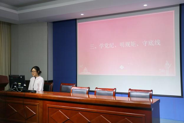 随后,专硕第一党支部组织委员张志莹向全体学员介绍了《中国共产党纪律处分条例》(以下简称《条例》)中的主要行为规范与准则。她提到,《条例》是规范党组织和党员行为的基础性法规。党的十八大以来,我们党先后3次修订《条例》,其中最新修订的《条例》已于2024年1月1日起施行。在了解《条例》的主要内容后,张志莹继续带领大家体会党纪学习的重要性,重点介绍了五种对党员的纪律处分及具体后果,并结合《条例》的具体条款以及问题表现,带领大家重点学习了关于违反政治纪律和政治规矩的行为等内容。