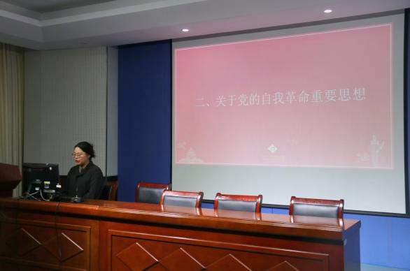 接下来,专硕第一党支部副书记高佳佳带领全体学员学习了“关于党的自我革命重要思想”,并解答了“我们党为什么要自我革命”、“为什么能自我革命”、“怎样推进自我革命”等重大问题。此前,习近平总书记在二十届中央纪委三次全会上重点强调:“在深入推进党的自我革命实践中需要把握好九个问题,即‘九个以’”。结合习近平总书记重要讲话精神,高佳佳指出,我们党在推进自我革命过程中要夯实党的全面领导的根本、坚定引领伟大社会革命的根本目的,以及抓住自我革命的关键。她还表示,全体学员要深刻领悟党的自我革命重要思想,并把思想和行动统一到关于党的自我革命的重要思想上来。