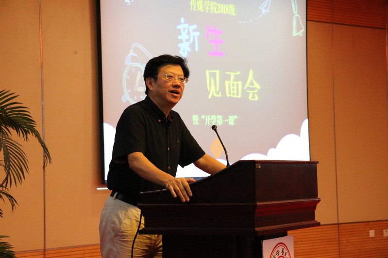 9月14日上午,传媒学院2018级新生见面会暨开学第一课在炳麟图书馆一楼学术报告厅如期举行。学院领导、各系主任及专业负责人、学科和学位点负责人、2018级本科生班主任老师以及全体研究生和本科生参加了此次活动。