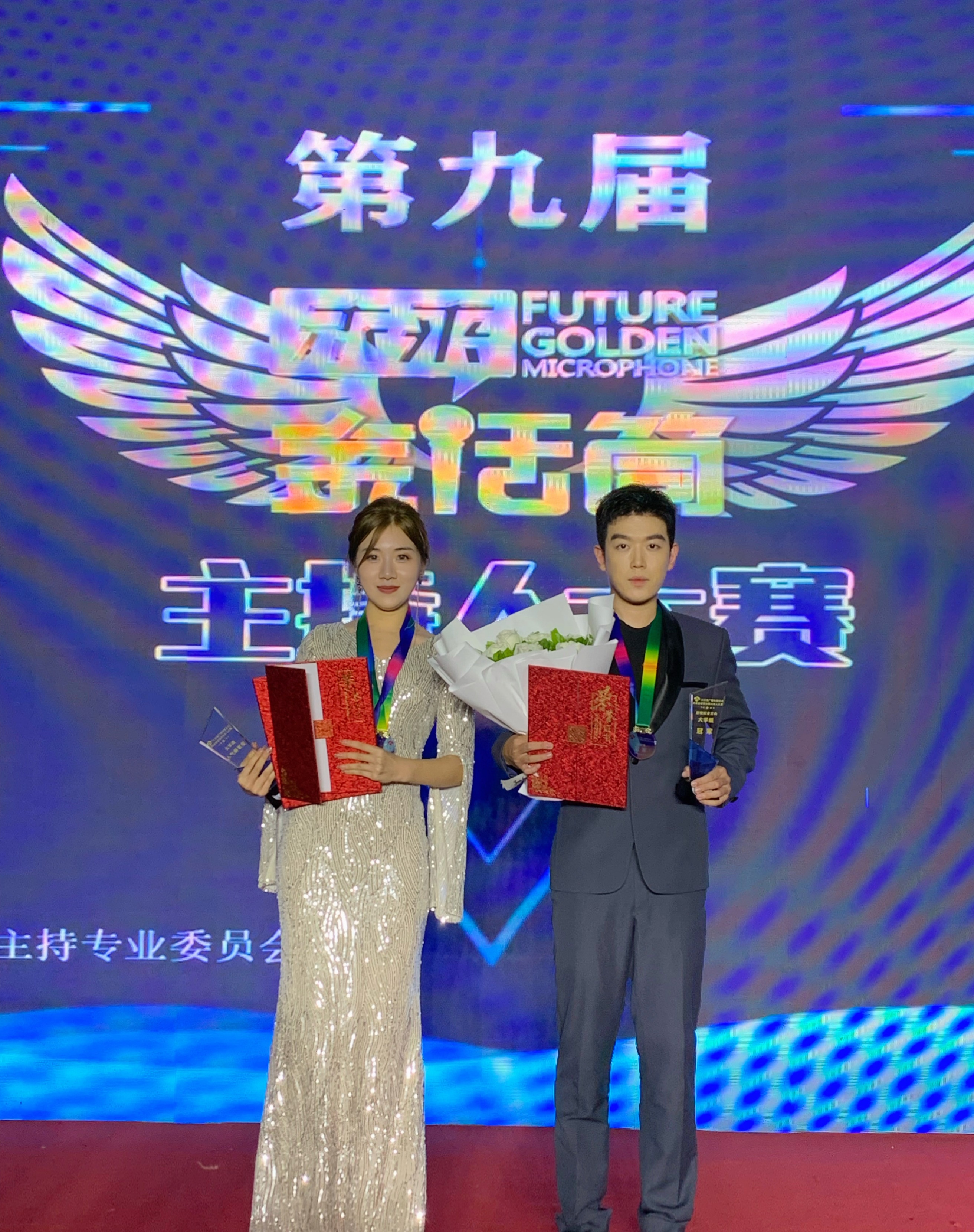 8月26日,第九届“未来金话筒”全国主持人大赛总决赛在南京圆满落下帷幕。我院19级播音主持专业学生代晓东荣获配音类全国总冠军,21级播音主持专业陆语然荣获晚会类全国十强,播音主持专业19级肖梓鹤、20级杨晴清和李宜霖分别获得新闻类、配音类、晚会类全国百强。播音主持专业教研室主任冯洋老师荣获优秀指导教师奖。