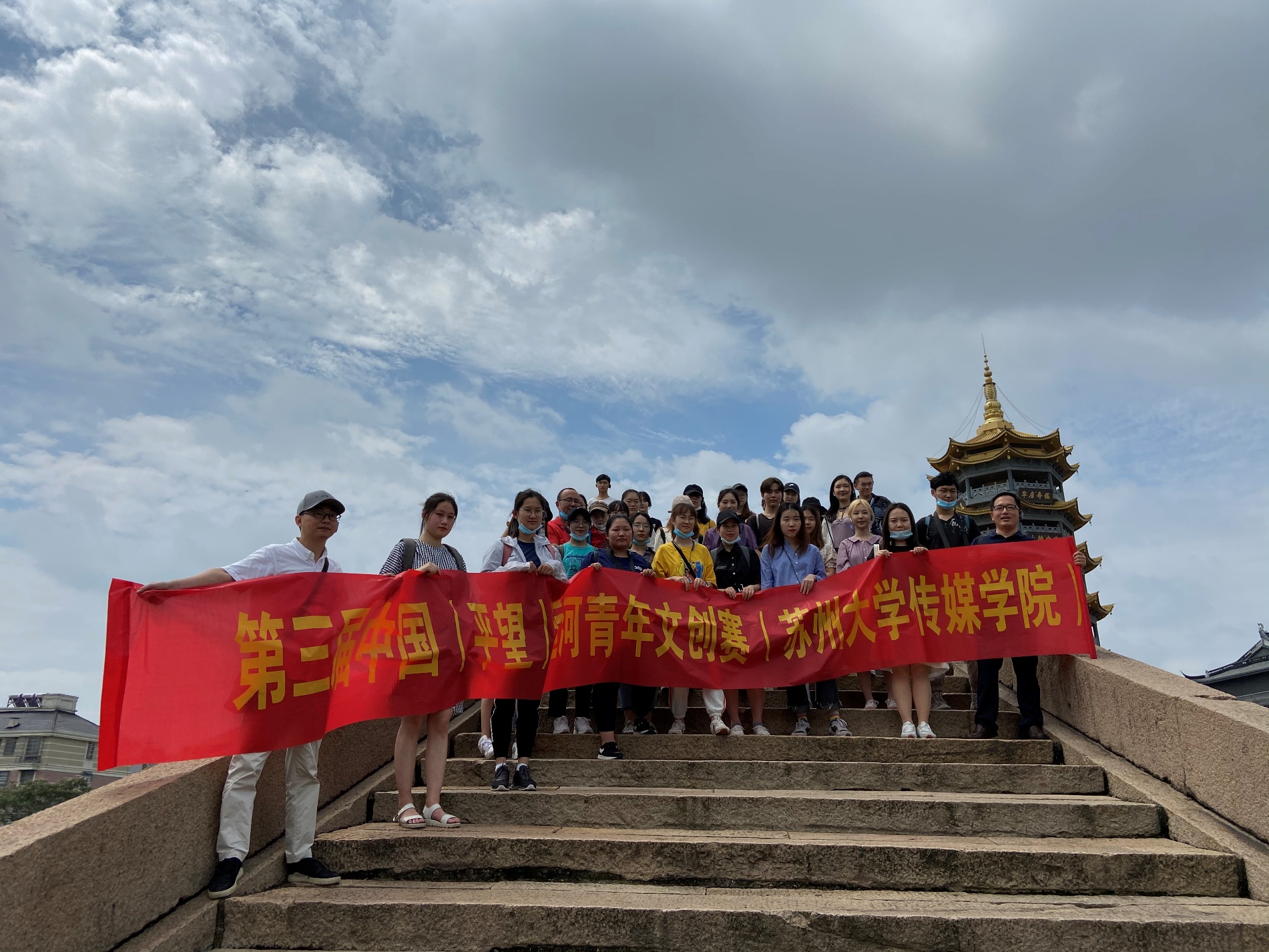 2020年6月19日,18级广告学专业、19级新闻传播大类30余名同学在广告系胡明宇、龚明辉和程粟老师的带领下,赴吴江平望镇创作采风。此次创作采风是为第三届中国(平望)运河青年文创挑战赛实地收集素材。