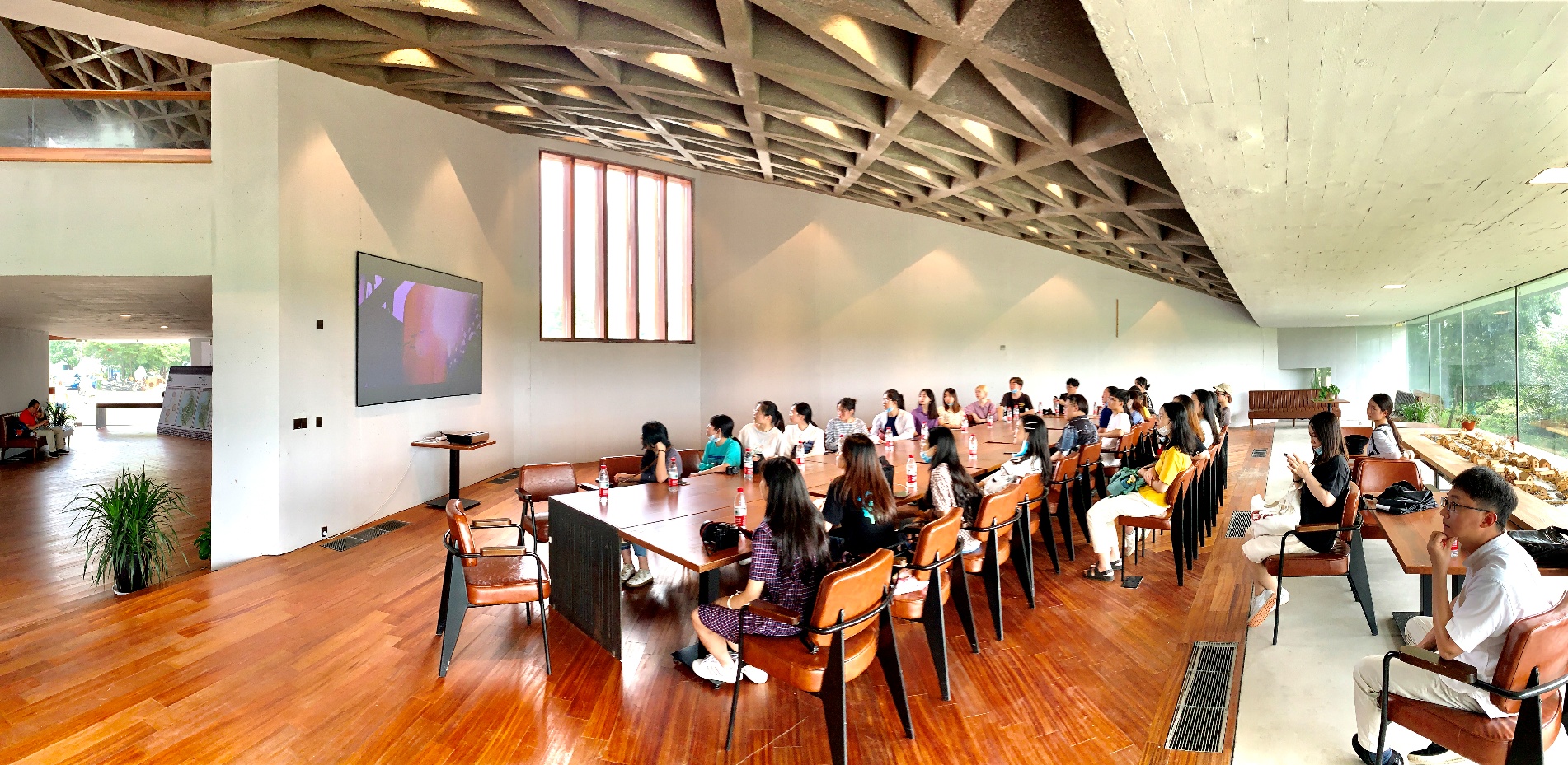 吴江平望镇是运河古镇,有着近700年的悠久历史。在平望镇人民政府的精心安排下,师生们参观了运河景区的小九华寺、安德古道、安德桥、粮仓和司前街等著名景点,并实地考察了庙头村长漾里民宿项目以及江苏省省级工业旅游点—爱慕生态工厂。师生们一路走、一路看、一路拍摄,积累了大量的创作素材。