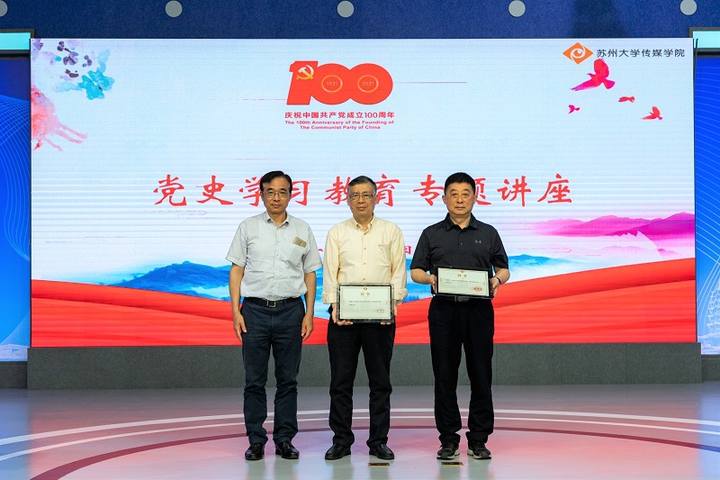 5月8日下午,我院“初心使命如何能自觉不忘?”党史学习教育专题讲座在学院一楼演播大厅举行。本次讲座由学院党委和关心下一代工作委员会联合举办,邀请到了苏州大学电影电视艺术研究所所长、教授、博士生导师、学院退休教师倪祥保担任主讲嘉宾,学院党委书记、关工委主任宁正法,关工委副主任、退休教师王苏光,党委副书记、副院长、关工委副主任宋海英,团委书记王雁冰,学工办副主任朱飞,以及部分学生党员和入党积极分子出席了本次讲座。讲座由宋海英主持。
