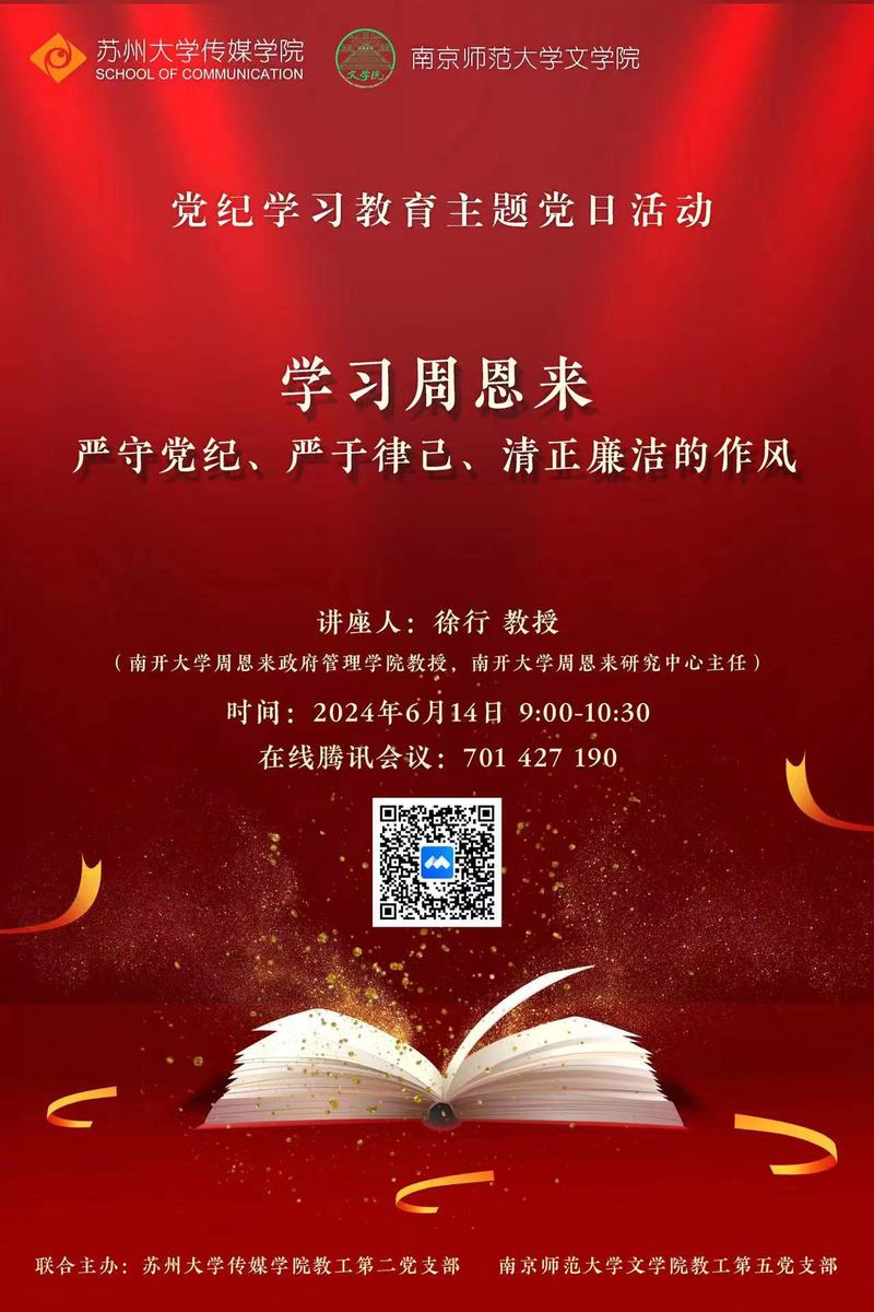 【讲座信息】学习周恩来严守党纪、严于律己、清正廉洁的作风