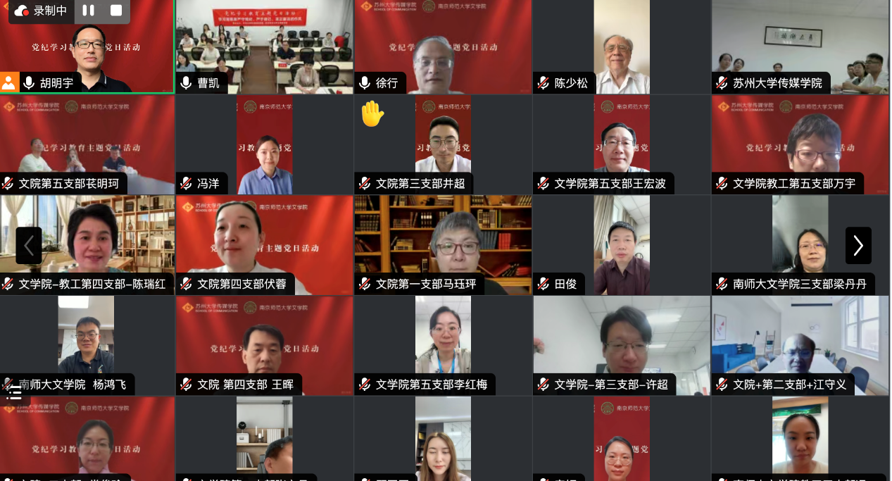 苏大传媒学院教工第二党支部与南师大文学院教工第五党支部联合开展党纪学习教育主题党日活动