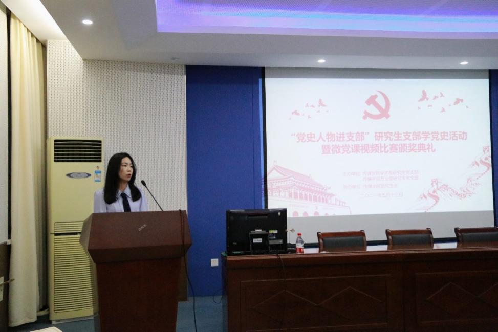2021年5月13日下午,传媒学院研究生党支部于传媒学院5148举办“党史人物进支部”党史学习主题党日活动暨微党课视频比赛颁奖典礼。本次活动由学硕支部、专硕支部、院研会联合举办,并特邀微党课视频比赛获奖者姚凯迪、洪图、李亚萱三位主讲党史人物,活动由专硕支部书记雷朗清主持。