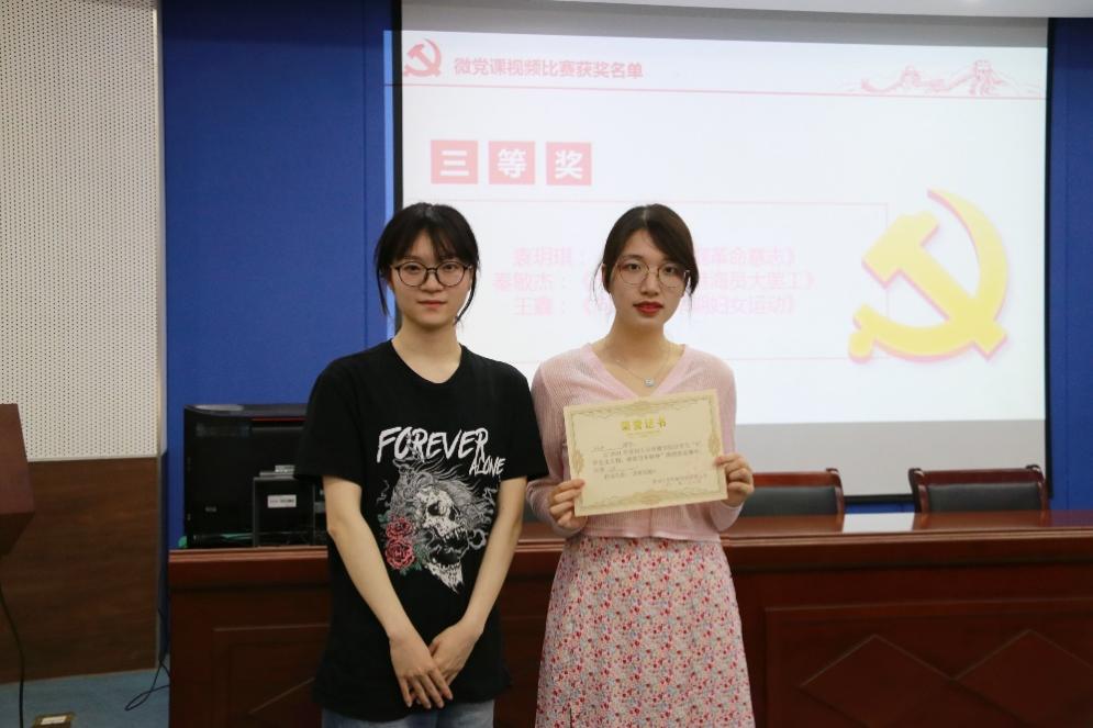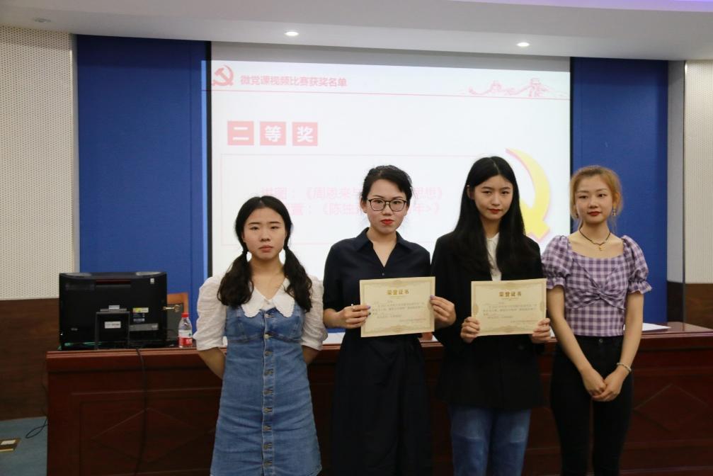 最后是微党课视频比赛的颁奖环节,由各支部的副书记、宣传委员和纪检委员为本次比赛的优秀奖、三等奖、二等奖和一等奖获得者颁奖。
