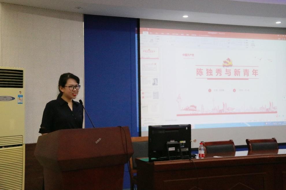 再次,本次微党课视频比赛二等奖获得者李亚萱同学为大家带来了《陈独秀与<新青年>》主题演讲。她介绍了陈独秀的思想以及《新青年》的倡议和历史作用,让我们深入了解和感受到了这位“觉醒年代”的热血青年。在她演讲结束后,主持人为大家总结了“党史人物”的共同点,即无论身处何时何地都心怀国家,为中国革命贡献自己的光和热。