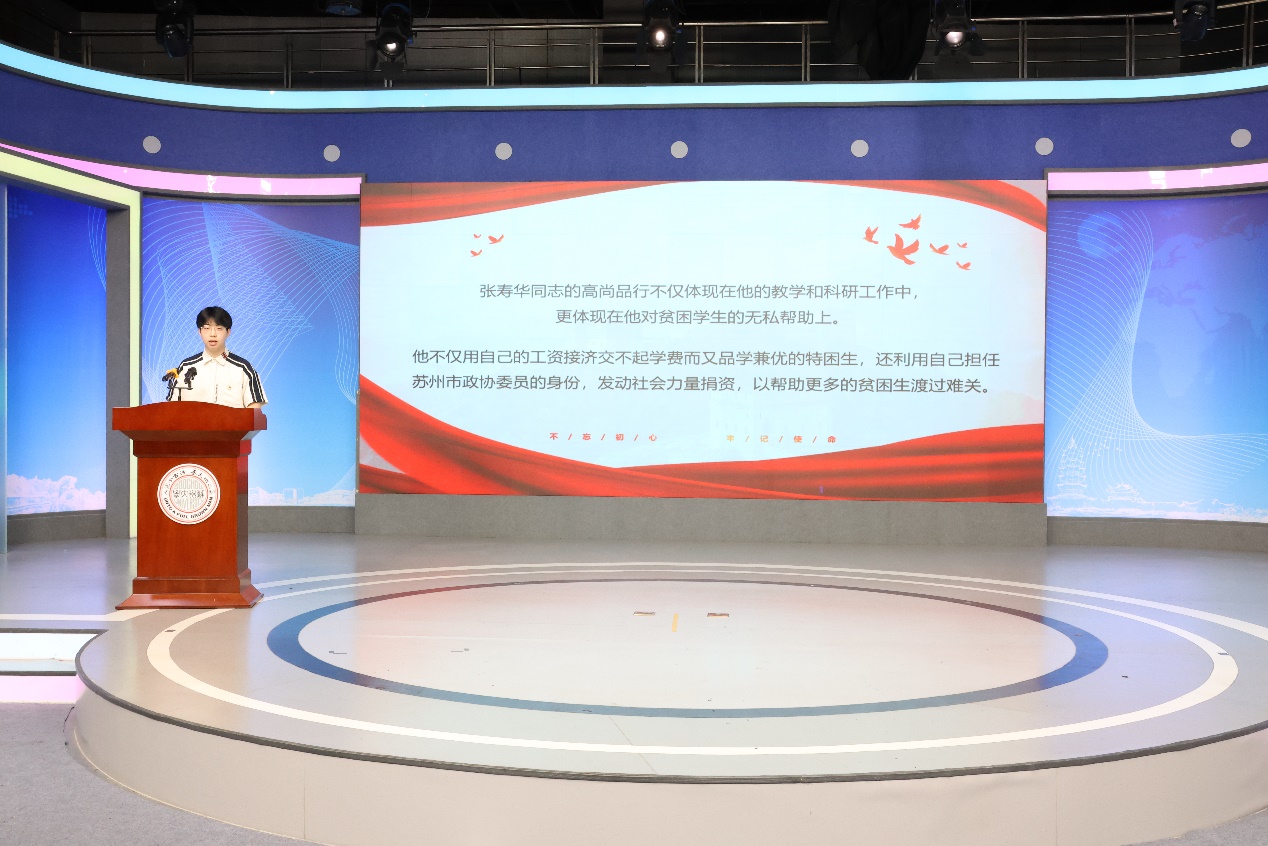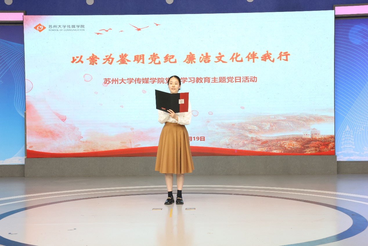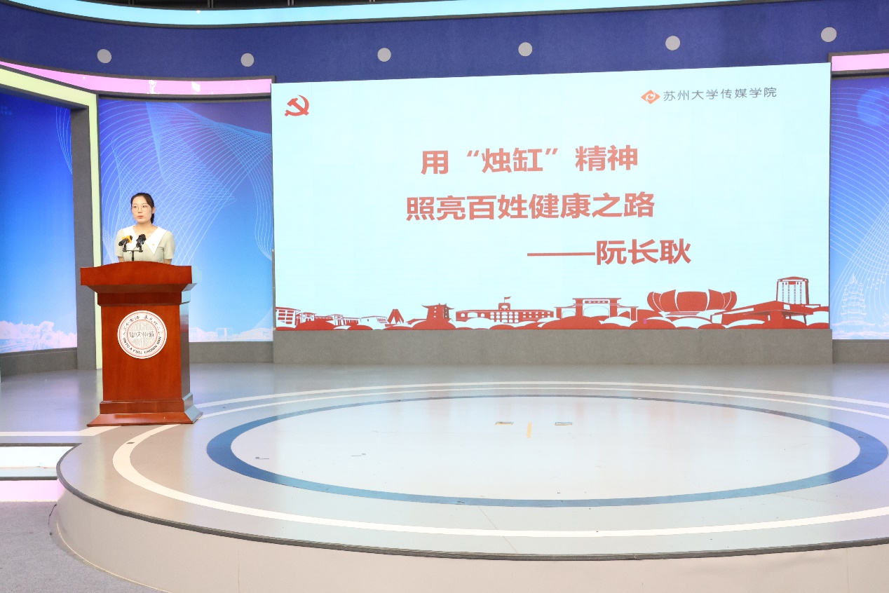 在“廉洁文化”环节,传媒学院4位老师和同学讲述了苏州大学百廿余年办学历程中涌现出来的廉洁故事,为大家深入剖析这些奋斗者先公后私、勤俭节约、甘于奉献、廉洁齐家的高尚精神品质。
