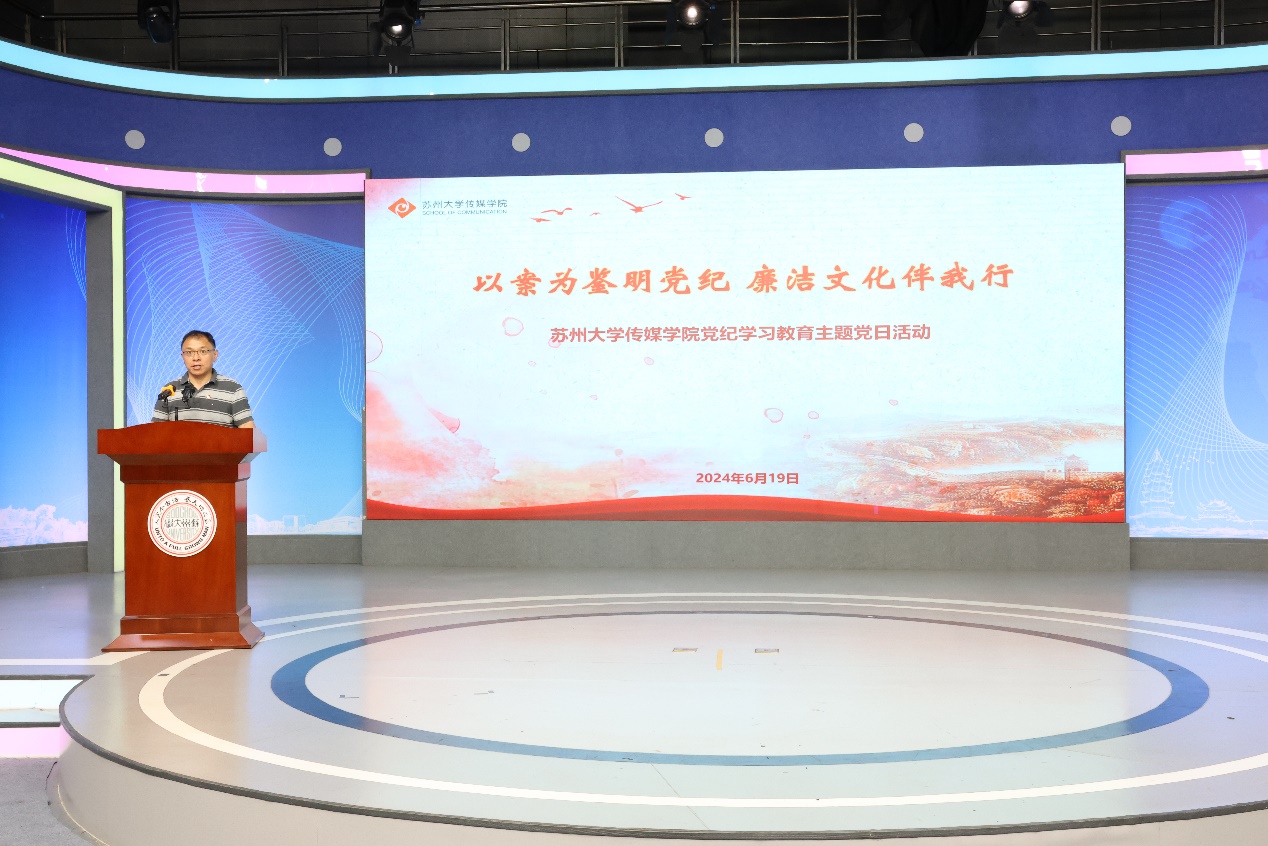 传媒学院党委书记张健在总结讲话中表示,本次党日活动旨在响应加强新时代廉洁文化建设的号召,推动党纪学习教育走深走实,一方面通过案例剖析,进一步加强党员师生对党的纪律的理解和认识,确保党的纪律在工作和生活中得到切实遵守,另一方面希望党员师生充分学习身边先进人物的榜样作用,传承廉洁文化,讲好廉洁故事,引导党员、干部真正把纪律规矩转化为政治自觉、思想自觉、行动自觉,在推进党的建设的新的伟大工程中贡献自己的力量。