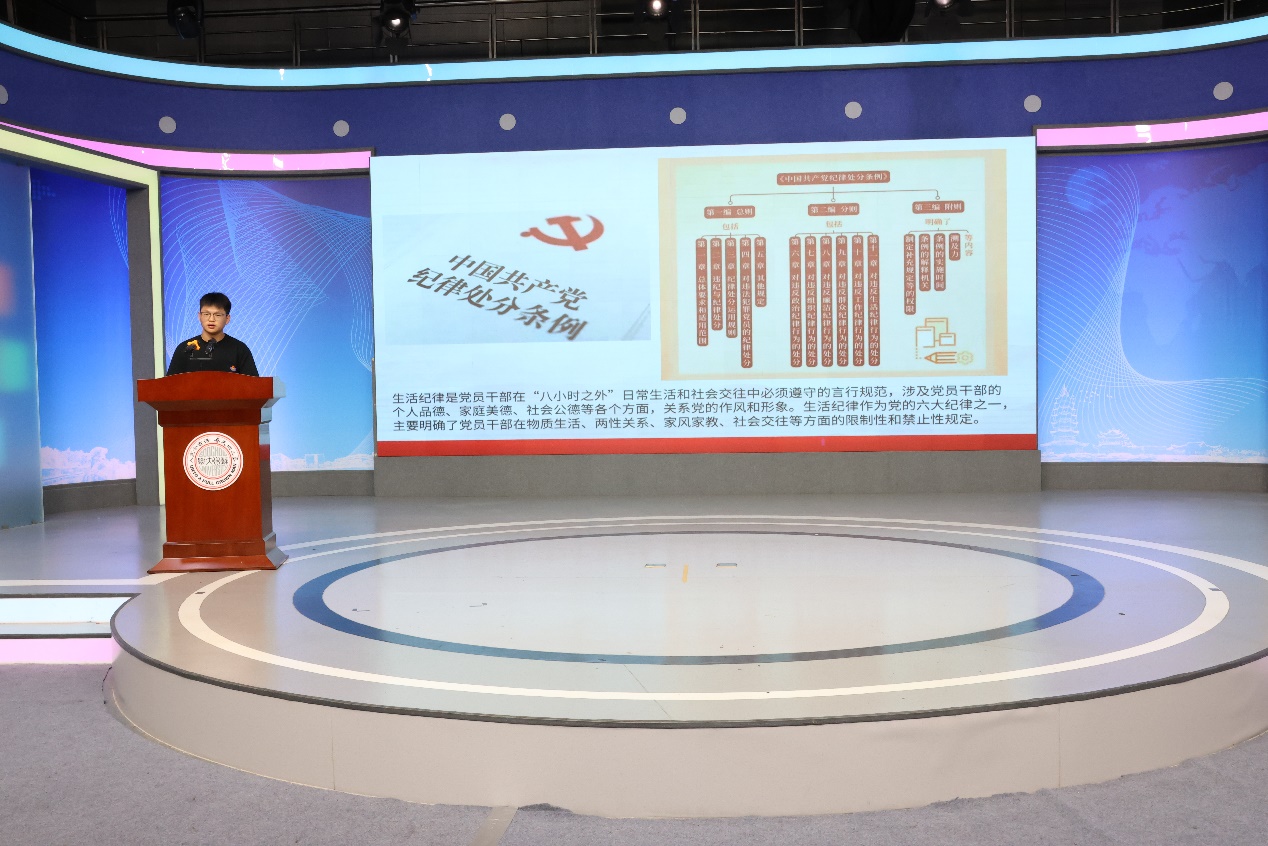 “以案说纪”环节旨在剖析党员干部违纪违法典型案例,以案说德、以案说纪,以案说法,以案说责,引导广大党员干部真正在思想上正本清源固本培元,在行动上有令即行、有令即止,以优良作风纪律护航学院高质量发展。